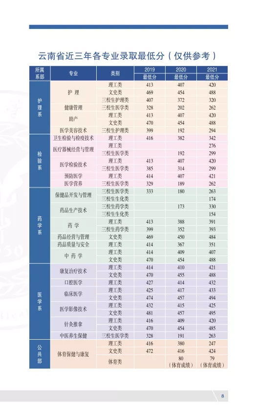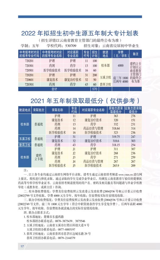 2022年楚雄醫藥高等專科學校三校生招生簡章及2019年|2020年|2021年各專業錄取分數線