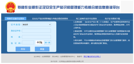 (1)使用“特種作業(yè)操作證及安全生產(chǎn)知識(shí)和管理能力考核合格信息查詢平臺(tái)”查驗(yàn)新版證書(shū)步驟同查驗(yàn)舊版證書(shū)步驟。