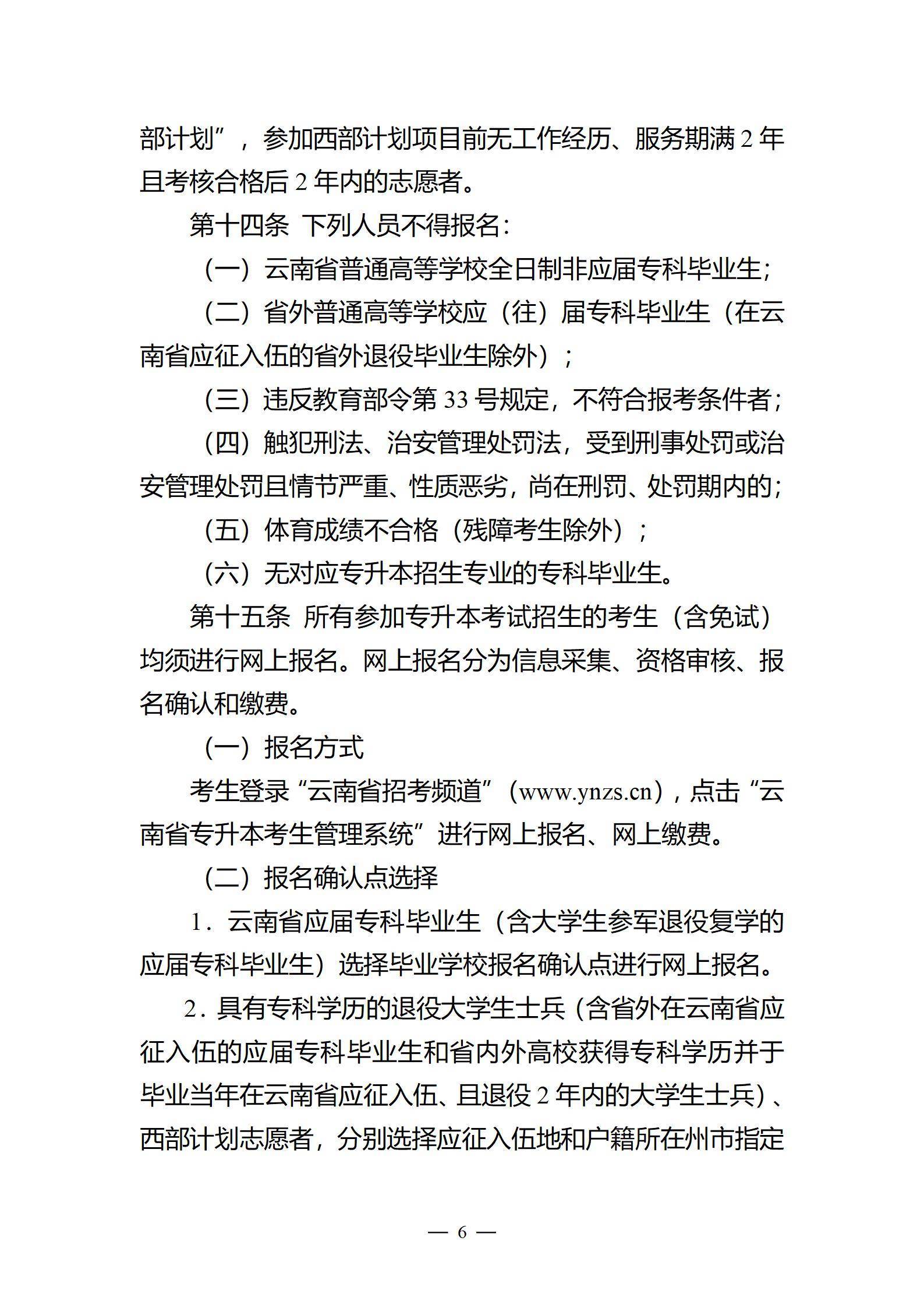 (三)云南省普通高等學校全日制應屆專科畢業生(含省內外大學生在云南省參軍后退役復學的應屆專科畢業生),體育成績合格(殘障考生除外);取得省內外普通高職(專科)院校全日制專科學歷并于畢業當年在云南省應征入伍、且退役2年內的大學生士兵;具有云南戶籍及普通高職(專科)院校全日制專科學歷,參加“大學生志愿服務西部計劃”,參加西部計劃項目前無工作經歷、服務期滿2年且考核合格后2年內的志愿者。報名時間