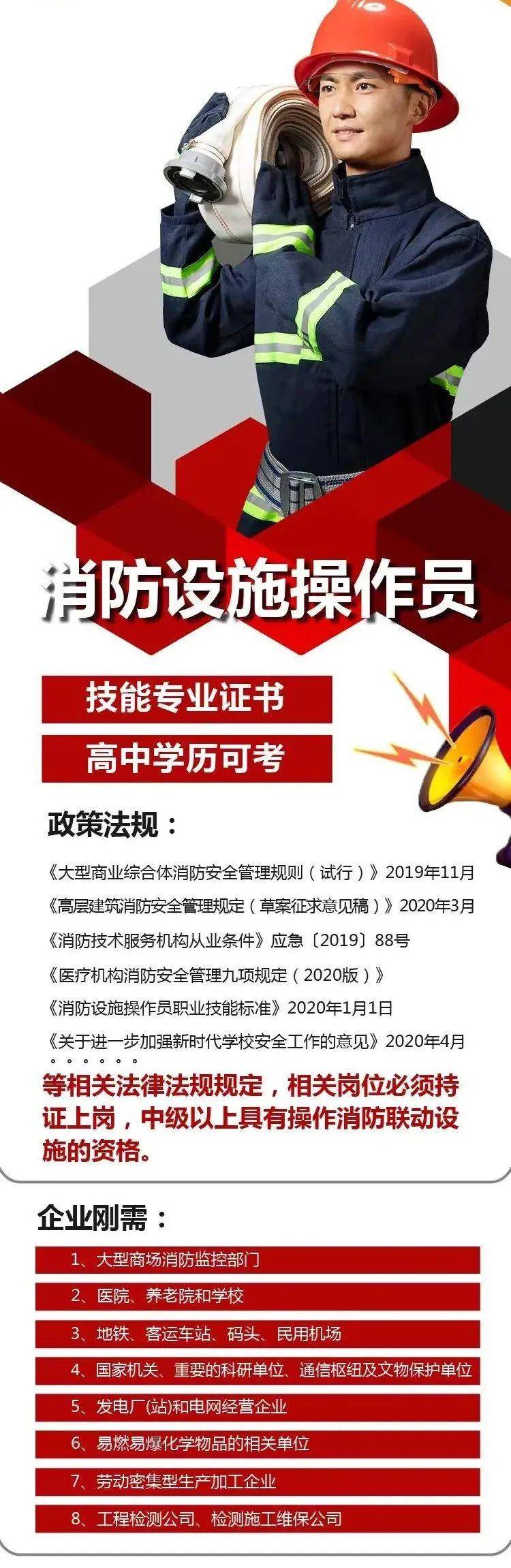 消防設施操作員屬于準入類技能人員職業資格,證書全國通用,終身有效。只需要高中(或中專)即可報名。如果你提升學歷困難,又想找一份體面的工作,那么,考取消防設施操作員證將是你的不二之選。