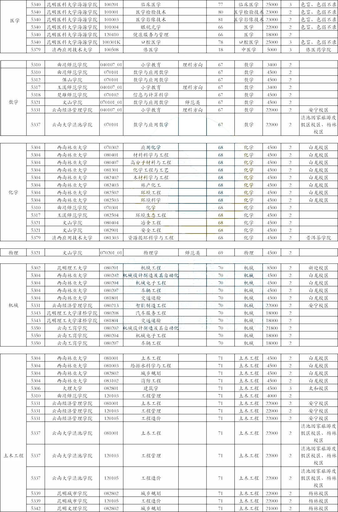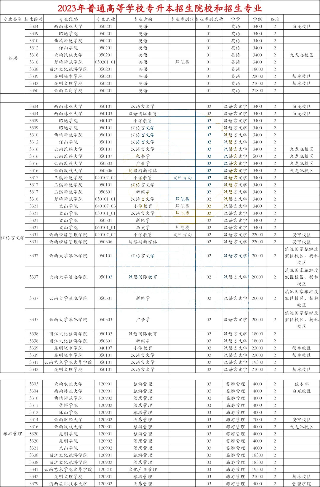 【重要參考】2023年云南專升本各專業招生院校分類情況