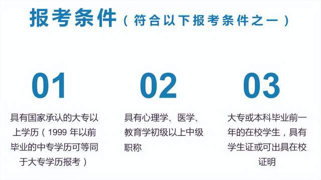 當前社會心理從業人員稀缺,國家為鼓勵和支持心理行業的發展與增加就業人員,心理咨詢師考試報名要求并不高,滿足以下任意一項即可: