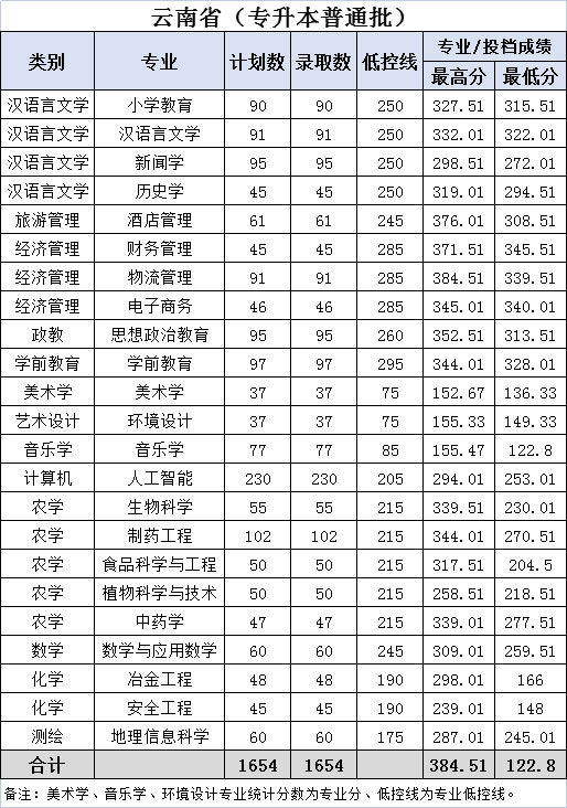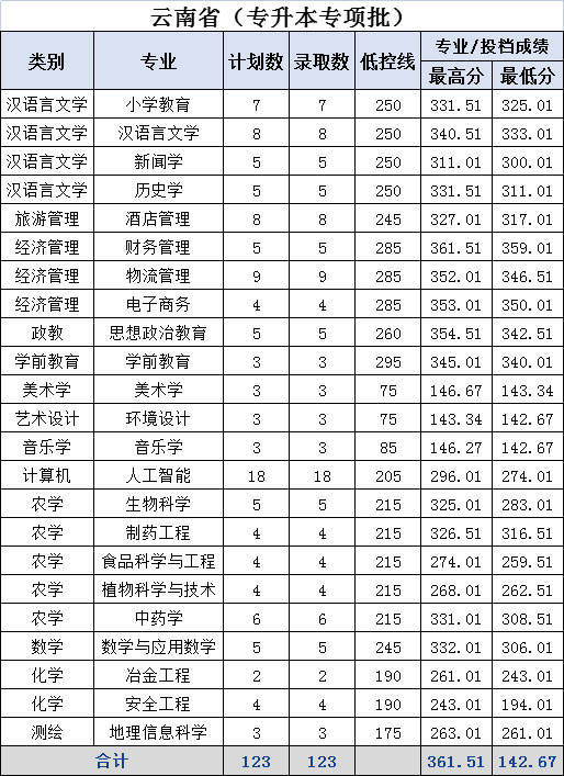 文山學(xué)院2023年專升本錄取分?jǐn)?shù)統(tǒng)計